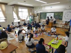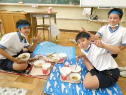 1度延期し、平日に実施となった影響で、教室にレジャーシートを敷いて給食を食べることとなりました。午後の競技に向けて話し合ったり、雑談をしたり、リラックスした雰囲気で昼食を食べている様子でした。