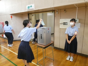 選挙管理委員は、厳正に選挙を行うため、クラスでの説明や投票所の管理が徹底されていました。適度な緊張感のある、素晴らしい立会演説会でした。