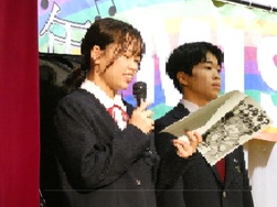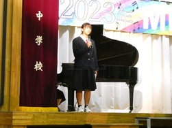 舞台発表は、「2年生 理科自由研究」「英語スピーチ」「2年生 職場体験事後学習」「3年生 修学旅行事後学習」「チアダンス部」「吹奏楽部」と、昨年度の倍の発表団体があり、各学年の代表生徒や、日頃の部活動の集大成を発表する生徒が会場を盛り上げてくれました。