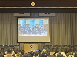 第2学年から選ばれた2名の生徒は、11月の初めにそれぞれドイツとアメリカに派遣され、文化の違いや現地校の生徒との触れ合いを経験しました。その1週間の活動内容を、他の生徒や保護者、各校の校長、教育委員会の方々に発表しました。
