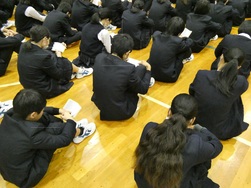 生徒会朝礼の様子(生徒会規約の改定)
