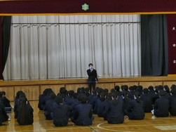表彰の後は学年ごとに集会が行われ、冬休みや3学期に向けての心構えや諸連絡が話されました。