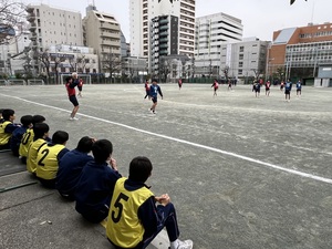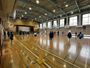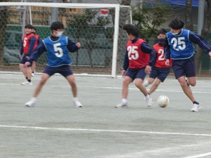 5日午前中に行われた3年生球技大会では、男子は校庭でサッカーを、女子は体育館でドッヂボールを行いました。