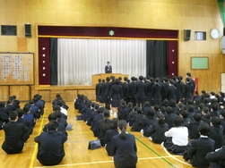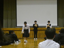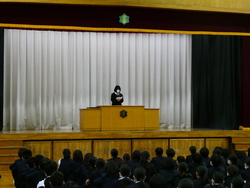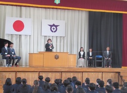 生徒会朝礼では生徒会長からお話がありました。他の生徒たちは真剣に聞くことができていました。
