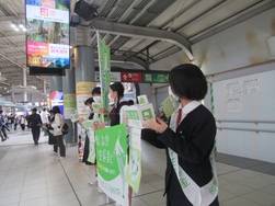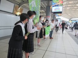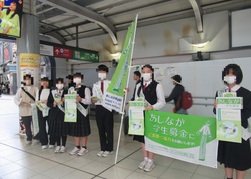 20日に品川駅で行われたあしなが学生募金に生徒会の生徒が参加しました。