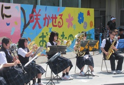 今回実施された第73回ガーデンパーティーで、御園中学校は区内に10ある会場の中で矢口小学校会場に参加し、生徒会、チアダンス部、吹奏楽部、そして、ボランティアの生徒が会場を盛り上げました。