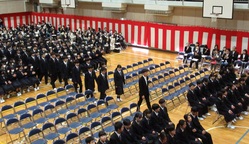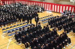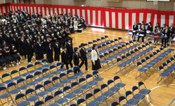 この日行われた入学式は、あいにくの雨でしたが、新入生102人全員出席で無事に執り行うことができました。