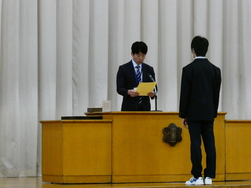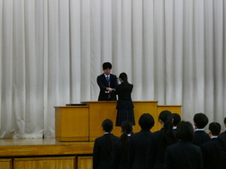 生徒会朝礼の後には表彰があり、卓球部の生徒が表彰されました。