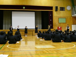 新入生オリエンテーションでは、生徒会からスライドを使った委員会や自治部活動などの説明があったほか、各部活動からバラエティに富んだ部活動紹介がありました。