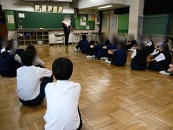 避難訓練では、大規模災害時に集団下校を行う場合を想定し、地域班編成が行われ、班長を決めたり、解散場所の確認を行ったりしました。