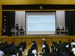 生徒総会では、生徒会が主体となり、各委員会の活動内容の報告や質疑応答がありました。