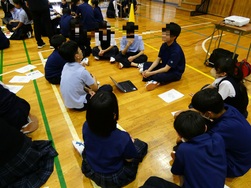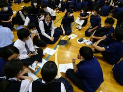 その後、全校生徒でグループディスカッションが行われ、「御園中に思いやりを広げていく活動」について話し合いました。