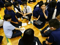 3年生が中心となって進行し、1、2年生の意見を聞く様子が多く見られ、どのグループも学年問わず意見が飛び交う活発なディスカッションが行われていました。