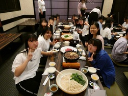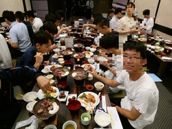夕食の様子(行きの新幹線から、毎回の食事の前後には係からの一言がありました!)
