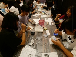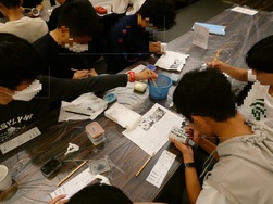 班行動の後は宿舎に戻り、入浴・夕食など済ませたあと、清水焼絵付け体験がありました。事前に準備した下書きをもとに、湯飲みに絵付けをしていきました。絵付け中は和気あいあいと作業に取り組む様子が見られました。
