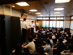 班行動のあとは宿舎に向かい、入館式が行われました。入館式では修学旅行実行委員から宿舎の方へ挨拶をしました。