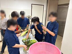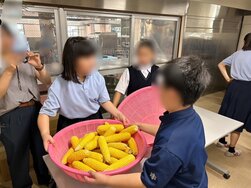 栄養教諭からとうもろこしの栄養についての説明があったあと、みんなで協力して取り組んだ作業は短い時間で終了することができました。