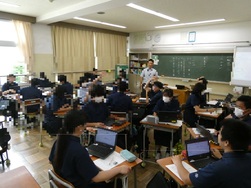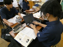 写真の授業は1年生の理科で、夏休みの自由研究に取り組む生徒の様子が見られました。