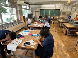 音楽科では10月に行われる御園祭に向けた「パートリーダー講習会」、栄養と保健では調理実習として「給食メニュー作り ~栄養と健康について学ぼう~」、技術科ではペンダントやミニラック等を作成する「木でつくる かんたん小物製作」が行われました。