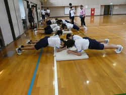27日は雨だったため、体育館で筋トレ中心の練習でした。