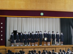 その後表彰があり、美術や習字、ポスターなどの優秀作品を制作した生徒や、女子バレーボール部が表彰されました。