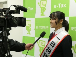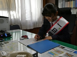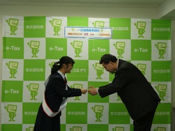 3年生生徒の書いた「税についての作文」が蒲田税務署長賞を受賞し、蒲田税務署にて一日税務署長を務めました。当日は税務署長として署員全体に対しての署長講話(作文の朗読)や名刺交換、ケーブルテレビのインタビューに応じました。その後、表彰式にて表彰状が授与されました。