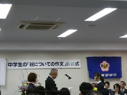 表彰の様子(税についての作文【蒲田税務署長賞】)