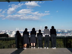 この日、天候に恵まれスタートした社会科見学は、横浜方面で実施されました。