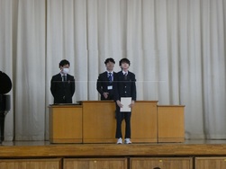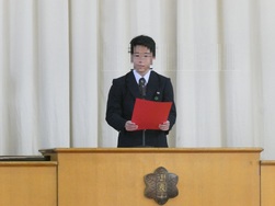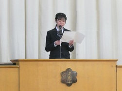 校長講話、校歌斉唱、また、各学年の代表生徒から「今学期の抱負」が話されました。