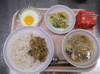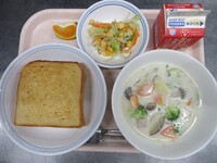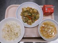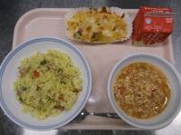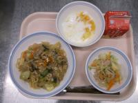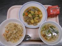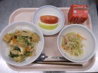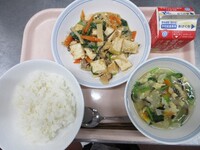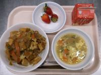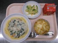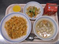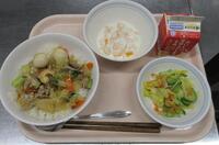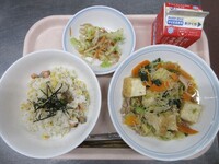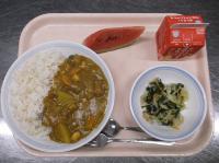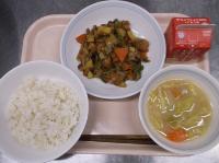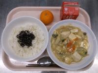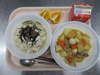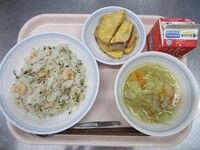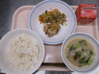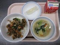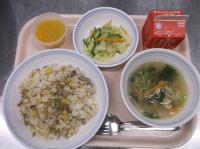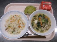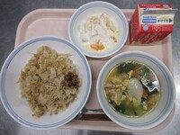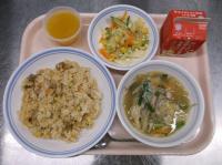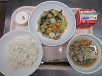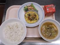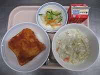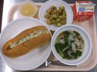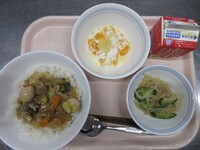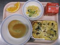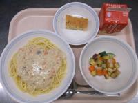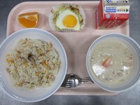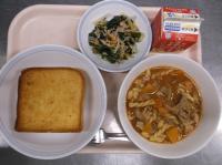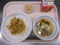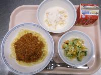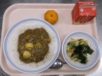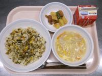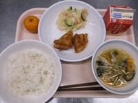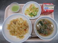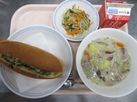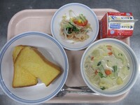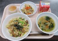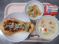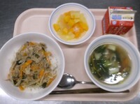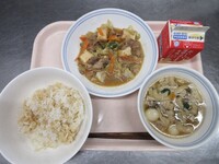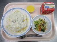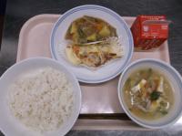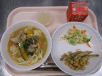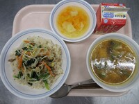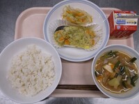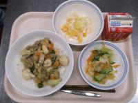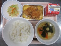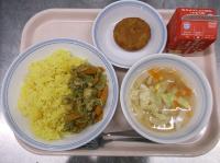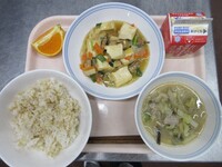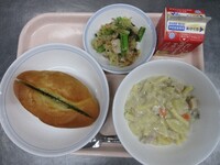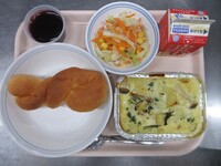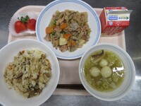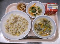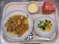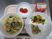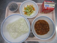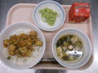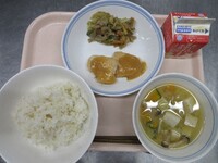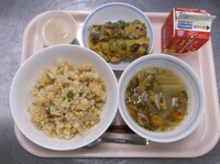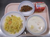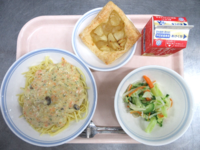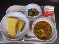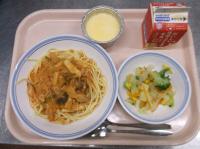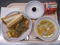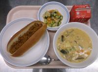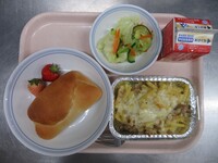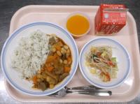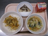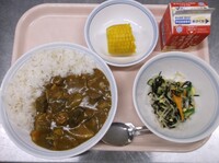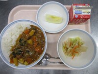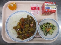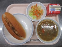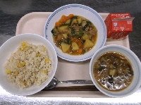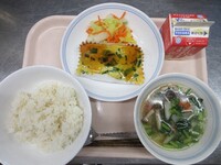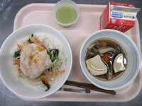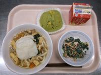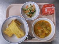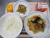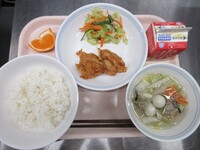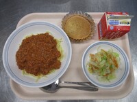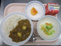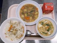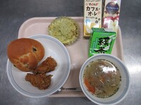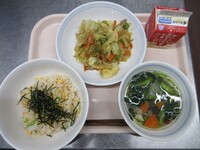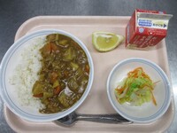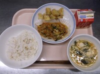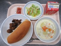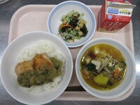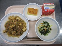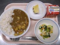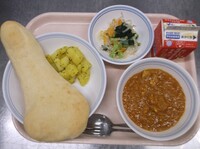 スパイシーチキンサラダのチキンは、カレー粉やトマトピューレ、にんにくで味付けをしました。「いいにおい」と言いながら給食当番をしてくれている生徒がいました。給食は栄養バランスだけでなく香りも大切にしています。