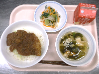 運動会前日ということで、「勝つ」丼にしました。特製ソースを絡めたカツはごはんがすすみます。