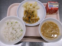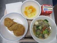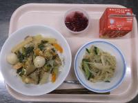 今日は都立入試でした。みんなの解答に丸がつきますように、白星になりますように、と丸い白玉を使った献立にしました!と言いたいところですが、たまたまです。でも、そんな気持ちを込めて今日の給食を提供しました。