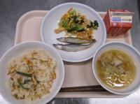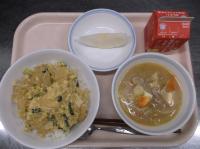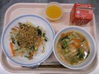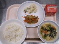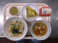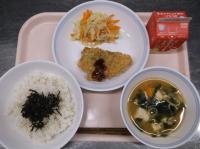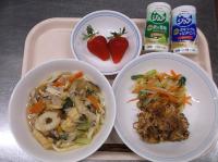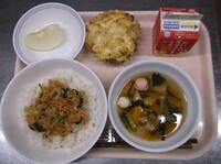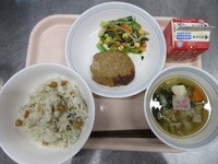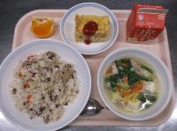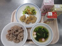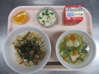 6月4日から10日までは「歯と口の健康週間」ということで、カルシウムが豊富な食材やよく噛むメニューを献立に取り入れています。よく噛んで食べてもらえるよう、サラダにわかめを使用しました。