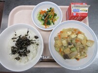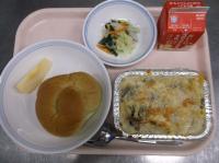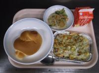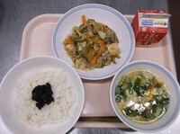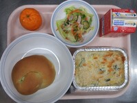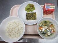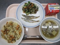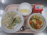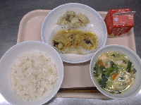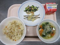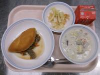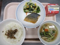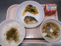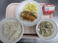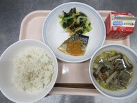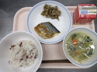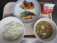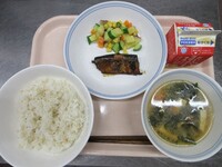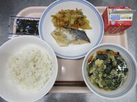 明日から期末考査ということで、頭の働きをよくしてくれると言われているDHAが多く含まれる「鯖」を使った給食です。よく噛んで食べることも、脳の活性化につながります。子供たちの頭がいつも以上に冴えますように!