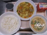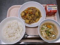 今日のカレーは、何カレーにするか3年生に選んでもらいました。ポークカレーやドライカレー、和風など様々な種類のカレーがありますが、最後のカレーに選ばれたのは、チキンカレーでした。