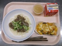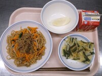 今日も3年生から食べたいとリクエストのあったメニューのしょうゆつけ麺を取り入れた給食です。