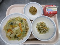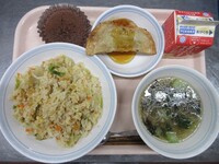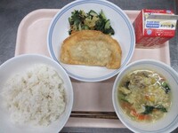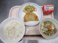 来週には3年生のリクエスト給食がありますが、今月はリクエスト給食日とは別に、食べたいメニューに挙げられていたものを散りばめました。今日はジャンボぎょうざとチョレギサラダです。3年生は最後のジャンボぎょうざだったと思います。