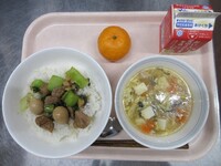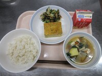 普通、肉豆腐には木綿豆腐を使うことが多いと思いますが、今日は厚揚げを使いました。厚揚げには鉄分やカルシウムなど、成長期や運動する際に摂りたい栄養が豊富です。今週末は運動会です。たくさん食べて、力を発揮してもらいたいです。