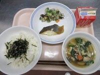 銀鱈は朝からみそダレに漬け込みました。味が染み、身も柔らかく仕上げることができ、ごはんの進むおかずでした。また、のりふりかけも、韓国のり風の味付けで、これまたごはんの進むおかずでした。