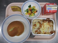 先日食材調達の都合で出せなかった国産のバナナを、今日提供することができました。3年生に食べてもらえなかったのは残念でしたが、給食でのバナナがめずらしかったのか、1,2年生がおいしそうに食べてくれていたので、提供できてよかったです。