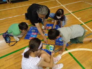 グループごとにALTの先生がついて、1日英語を使っていろいろな活動に取り組みました。最初は、緊張してしまいましたが後半には、ジェスチャーなども使いながら積極的に活動していました。施設の人などにもしっかり挨拶できている姿が素敵でした。
