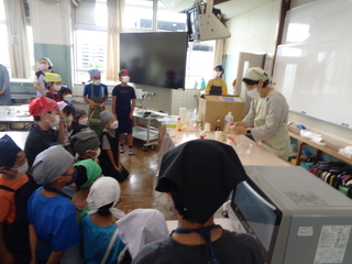 浄水場について、学習をしました。実際に水をきれいにする実験を行い「こんなにきれいになるんだ」とびっくりしていました。また、浄水場の方々の仕事について詳しく知ることができました。