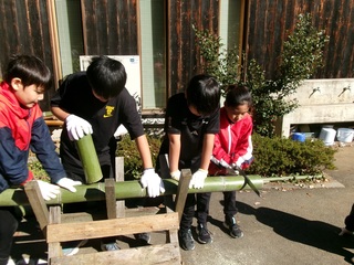 クラフト体験では竹の食器づくり、森林体験では森林整備を行いました。自然環境を守る大切さだけでなく、友達と協力することの大切さや周りを見て自分の役割を判断することについて学ぶことができました。