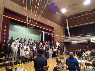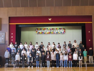 最後に、6年生の出し物がありました。「在校生ありがとう」「中学校でも頑張ります」の気持ちが伝わる、素晴らしい合奏と合唱でした。
