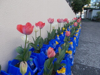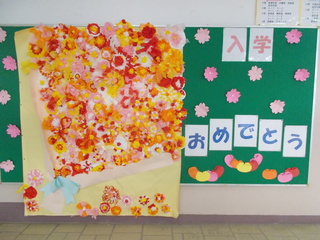 4月6日に40名のかわいらしい新1年生が中萩中小学校に仲間入りしました。今の2年生が育てたチューリップで入学をお祝いしています。