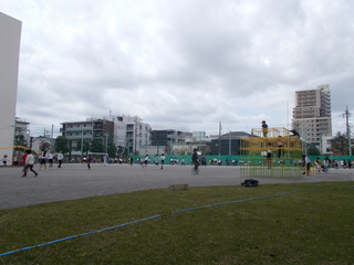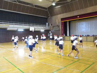 4年生は体ほぐしの運動をしていました。クラス替えをしたこの時期、友達と一緒に体を動かす楽しさを味わうことは大切です。相手にタッチをされないよう、紅白玉を向かいのコートに運び、数を競っていました。タグラグビーにもつながる楽しい活動で、みんないい汗を流していました。