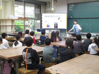 3年生は、図工専科の先生による図工の学習が始まります。はじめに先生から図工でがんばってほしいこと、図工室の約束など説明がありました。3年生になったら、こんな道具を使うよと説明があったとき、一番盛り上がりました。初めて使う道具が楽しみなようです。