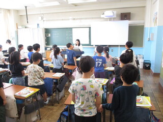 3年生は今年いらしたALTのトリシャ先生との初めての授業でした。トリシャ先生は元気で明るい先生です。世界の挨拶の仕方を学んで、元気に挨拶を交わしていました。これからいろいろな場面で使える英語を少しずつ身に付けてほしいです。