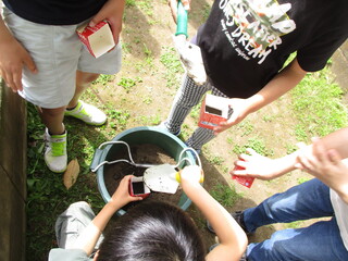 校舎裏の学級園に4年生が集まっていました。春に芽を出す植物を育てるためです。