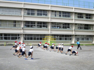 日差しがすっかり強くなってきました。校庭では2年生が元気に体育で体つくりの運動に取り組んでいます。準備運動では、足の伸ばし方、首の回し方など、丁寧に体を動かしていました。低学年の時に正しい体の動かし方を身に付けることは大切です。運動できる体を自分で準備できるようにしたいですね。